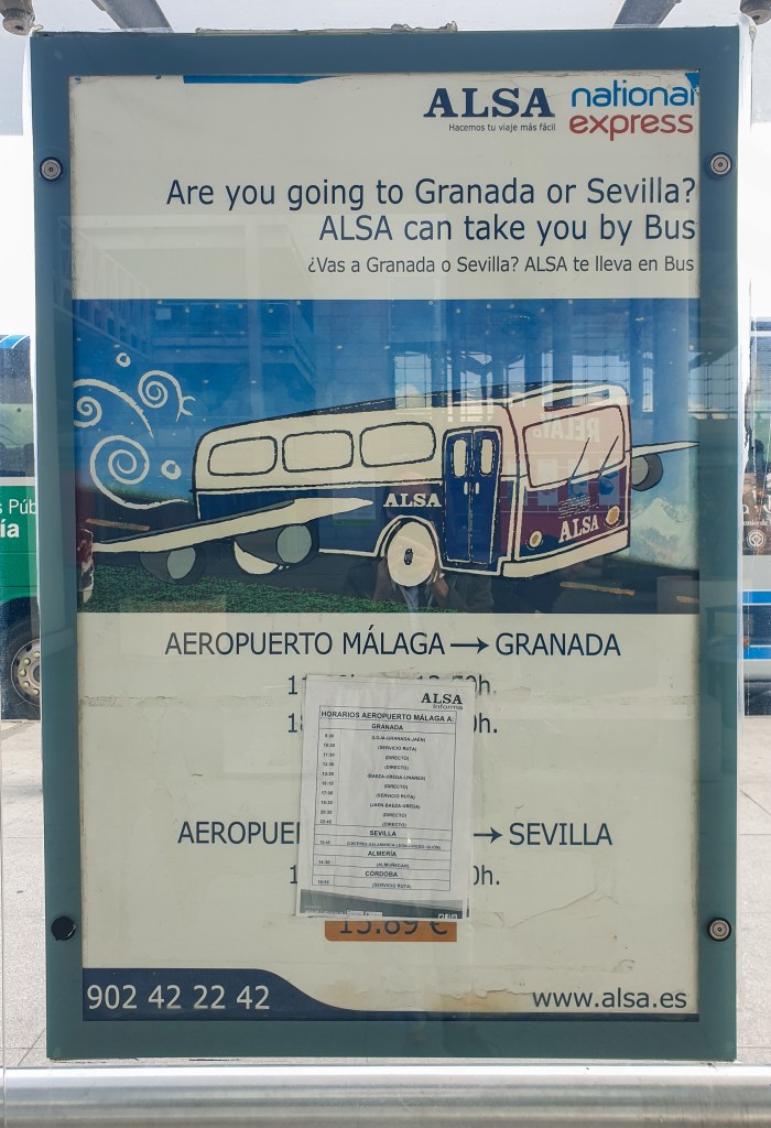 Greitasis autobusas linija A, nuveža iš Malagos oro uosto iki Malagos centro sustodamas 10 stotelių.