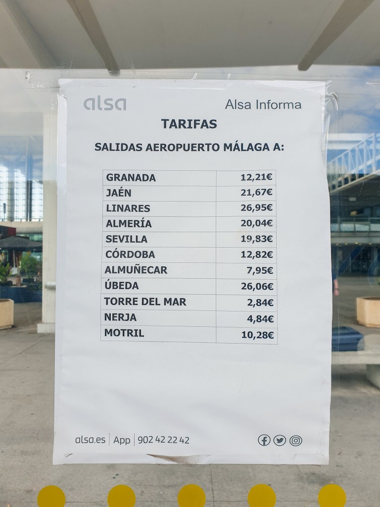 Internetinėje svetainėje išvykimo stotelę pasirinkite – Malaga Aerop., o kryptį nurodykite į kurį miestą vyksite. Pasirinkite ar vyksite į vieną pusę (ida) ar į abi puses (ida y vuelta), nurodykite datą, kiek keliaus žmonių ir paspaudę mygtuką „Busca el mejor precio“ pamatysite geriausius pasiūlymus, laikus, kainas, kelionės trukmę.