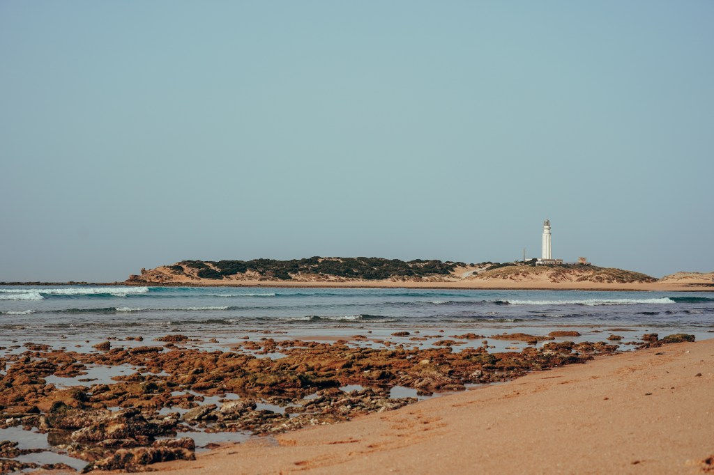 Paliekame automobilį stovėjimo aikštelėje ir ilgai netrukus patenkame į erdvų ir tuščią smėlio paplūdimį prie Atlanto vandenyno. Laisvė. Tolumoje matosi mūsų ryto tikslas – Cabo de Trafalgaro. Besimėgaudami ramybe ir erdvia pakrante žingsniuojame link Trafalgaro švyturio, kuris yra iškyšulyje. Pasiekiame asfaltuotą keliuką, kuris vietomis visai užpustytas smėliu. Prieiname švyturį, kuris pastatytas 1860 metais. Žvelgiant iš kyšulio atsiveria platūs smėlio paplūdimiai, kaimeliai ir vandenynas.