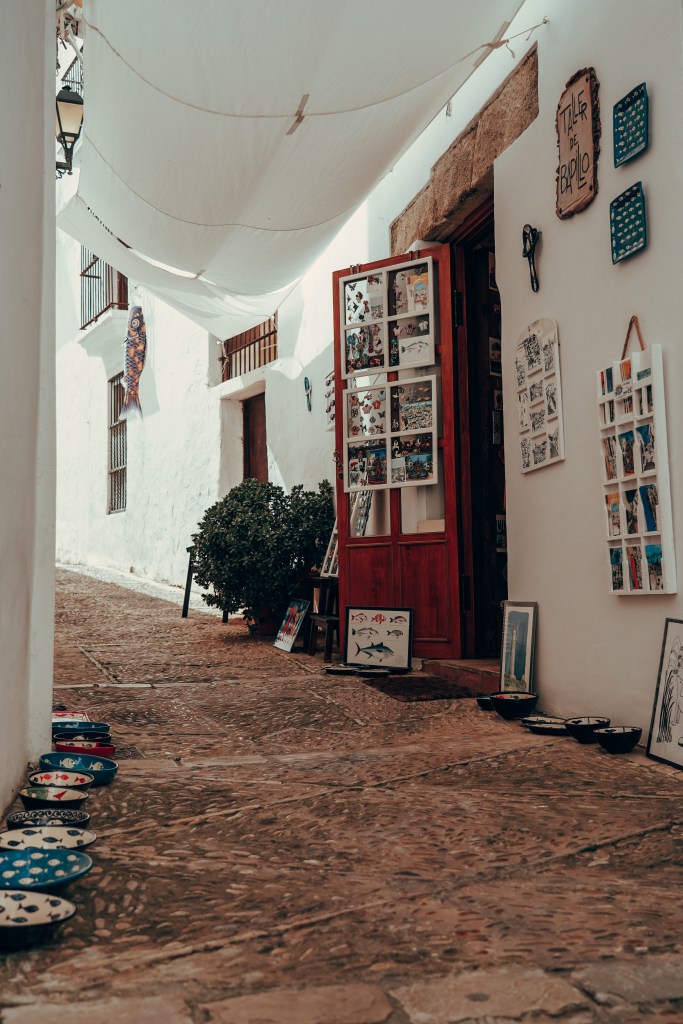 Beieškodami pilies – Castillo de Vejer užsukame į meno kūrinių turgelį, siaurose gatvelėse aptinkame jaukių meno, keramikos dirbinių krautuvėlių, kurias atrandame, dėka, paslaptingai pasigirdusios muzikos už posūkio.