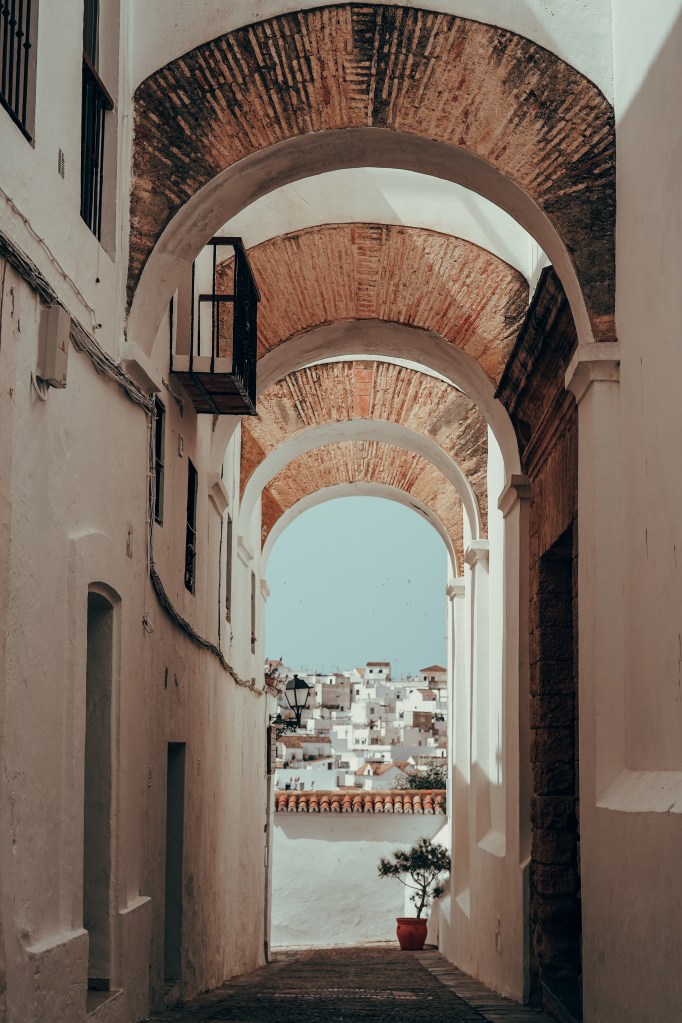 Mano dėmesį patraukia siauras praėjimas su gražiomis arkomis – Arcos de la Judería, už kurių matosi balti, kalvą gaubiantys Vejer namai. Šios arkos žymi įėjimą į žydų kvartalą.