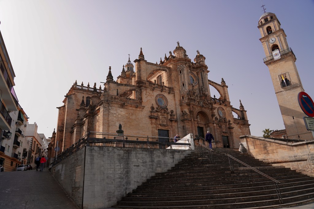Žingsniuojame miesto gatvėmis praeiname keletą senamiesčio aikščių, stabtelime apsidairyti Plaza de la Asunción aikštėje kurią supa istoriniai pastatai, galiausiai pasiekiame įspūdingą Jerez katedrą, kuri nustebina nenudailintu fasadu, kuris pasakoja gilią istoriją. Tai katalikų bažnyčia pastatyta XVII amžiuje, architektūroje atsispindi gotikos, baroko, neoklasicizmo stiliai.