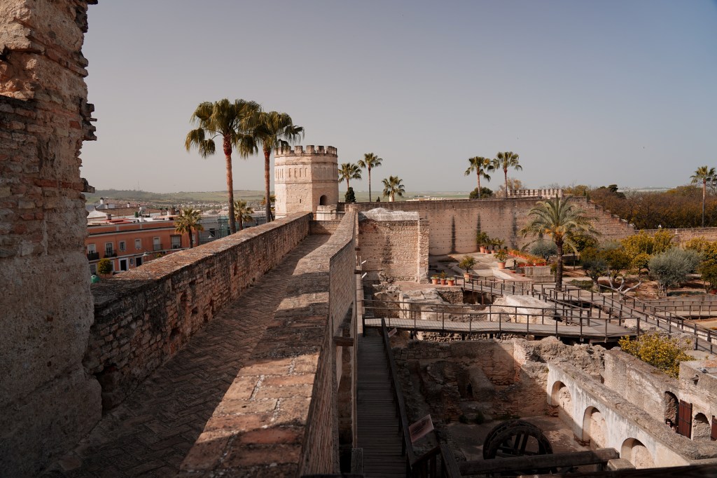 Alcazar de Jerez de la Frontera – kitas mūsų tikslas. Žingsniuojame Alameda Vieja parko alėjomis, kol randame įėjimą į istorinę maurų valdymo laikotarpiu pastatytą tvirtovę, kurioje pakeitimus atliko krikščionys išstūmę arabus. Vaikščiodami po teritoriją randame mečetę, aliejaus spaudimo malūną, miesto vartus, arabiškas vonias, turime galimybę pasivaikščioti sodu ir užlipti į gynybinių sienų bokštus. Gera ne tik giliau pažinti miesto istoriją, bet į pažintį leistis beveik vieniems, viso pasivaikščiojimo metu sutikome vos keletą porų iš kitų šalių, o ispanai turbūt ilsisi po didžiosios Velykų savaitės (Semana Santa >>), balandis puikus laikas keliauti po turistines vietas.