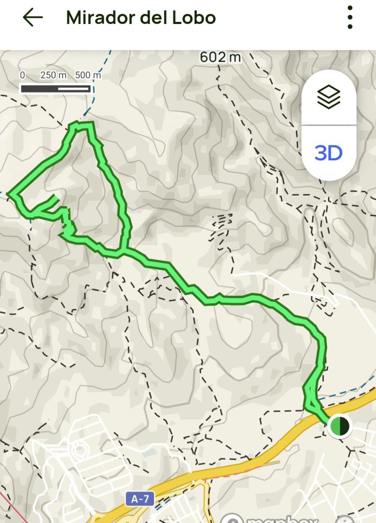 Šį kartą noriu pristatyti žygio maršrutą vedantį iki apžvalgos aikštelės su vilko skulptūra – Mirador de la Cañada del Lobo, kuri yra maždaug 600 metrų aukštyje virš jūros lygio. Pasiekus Apžvalgos aikštelę atsiveria, išties, graži panorama į Costa del Sol pakrantę, Viduržemio jūrą. Keliaujant šiuo maršrutu lydi vešli pakrantės augmenija, pušynai, alyvmedžiai, krūmai, galima sutikti kalnų ožių, chameleonų, šernų, afrikinių linzangų, įvairių paukščių, drugelių.