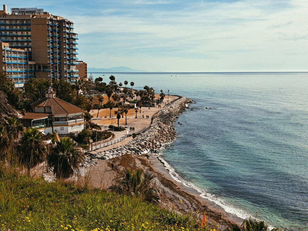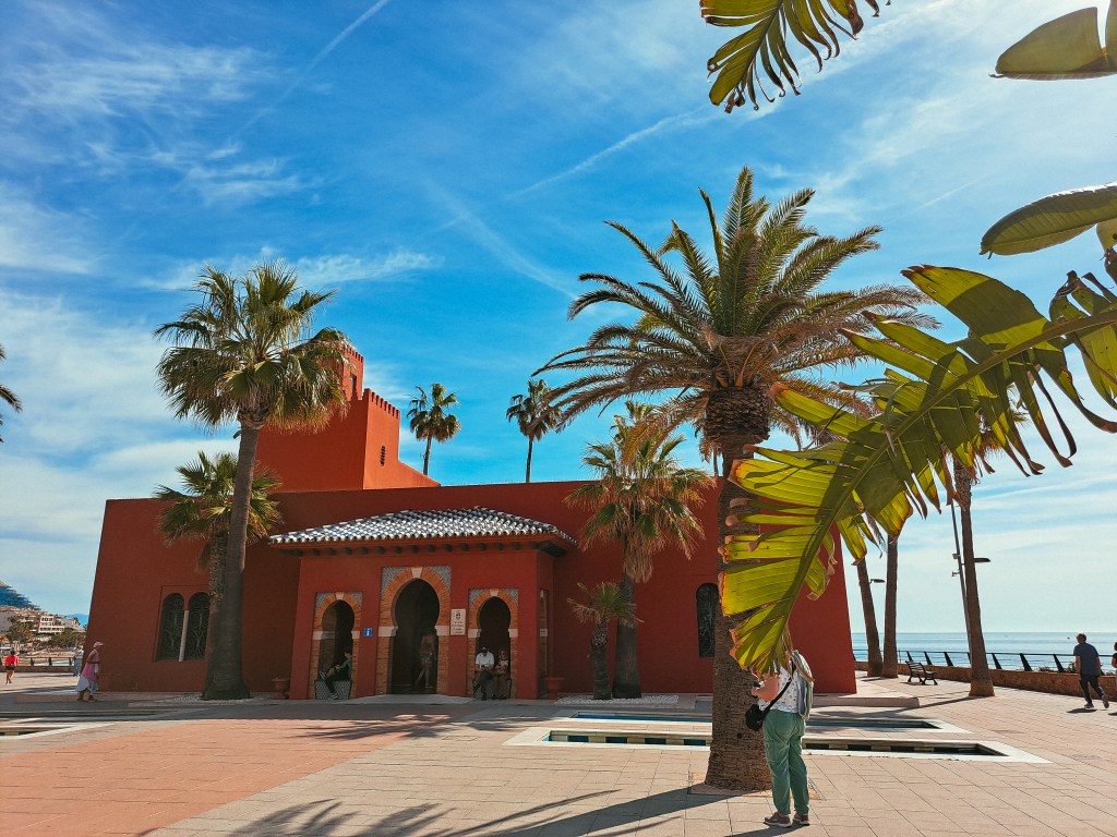Kadangi gyvename Benalmadenos pakraštyje, tai žygį iš čia ir pradėjome. Sočiai papusryčiavę ir užsimetę kuprines su užkandžiais pajudėjome jūros link. Neilgai trukus pasitinka žavingi pakrantės vaizdai. Turime pereiti visą Benalmadenos pakrantę. Pasiekiame labiausiai turistinę miesto dalį Benalmadena Costa, stabtelime prie Bil Bil pilies, kuri pastatyta ant jūros kranto, dekoruota raudonu tinku, ornamentais ir raštuotomis plytelėmis. Neoarabiško stiliaus salėse rengiami įvairūs miesto renginiai ir veiklos, nevykstant renginiams galima užeiti ir apsidairyti viduje. Plačiau apie kurortinį Benalmadenos miestą ir lankytinus objektus galite sužinoti ČIA >>
