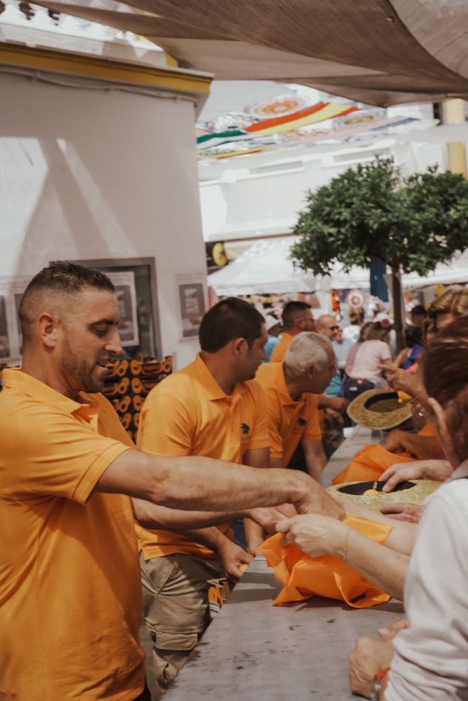 Atvykę į Sayalonga kaimelį festivalio dieną pastebėjome, kad formuojasi ilga eilė prie valstybinės įstaigos durų. Nejaugi žmonės spręs biurokratinius reikalus šventės metu? Gi sekmadienis, neturėtų dirbti valstybinės įstaigos, todėl spėjame, kad ši sparčiai ilgėjanti eilė susijusi su šventės planu. Nežinodami ko žmonės laukia, stojame į eilę ir mes, su intriga laukiame. Atsidarius durims į patapą įeina žmonės ir greit išeina nešini skrybėles arba ryškiai oranžinius maišelius rankose (tuščius). Eilė juda greit, įėję į patalpą, moterys gauna gražius oranžinius, daugkartinio naudojimo maišelius, o vyrai skrybėles. Sakyčiau seksistinis sprendimas skirstyti ką duoti vyrams, o ką moterims, vietinės gyventojos dar bandė ginčytis, bet skrybėlių gauti nepavyko. Pasiėmę skrybėles ir tuščius maišelius keliaujame iš pastato link vietos kur dalinami nisperos šventės svečiams. Pasirodo nispero gauna tik tie, kurie atkiša maišelį arba skrybėlę, tad maišeliai pasipildė šviežutėliais nispero vaisiais. Toje pačioje vietoje svečiai vaišinami vietiniais vynais. Daugelis gavę po keletą nisperų vėl grįžta su tuščiomis skrybėlėmis ir kartoja tiek kartų kol maišeliai užsipildo ryškiaspalviais vaisiais.